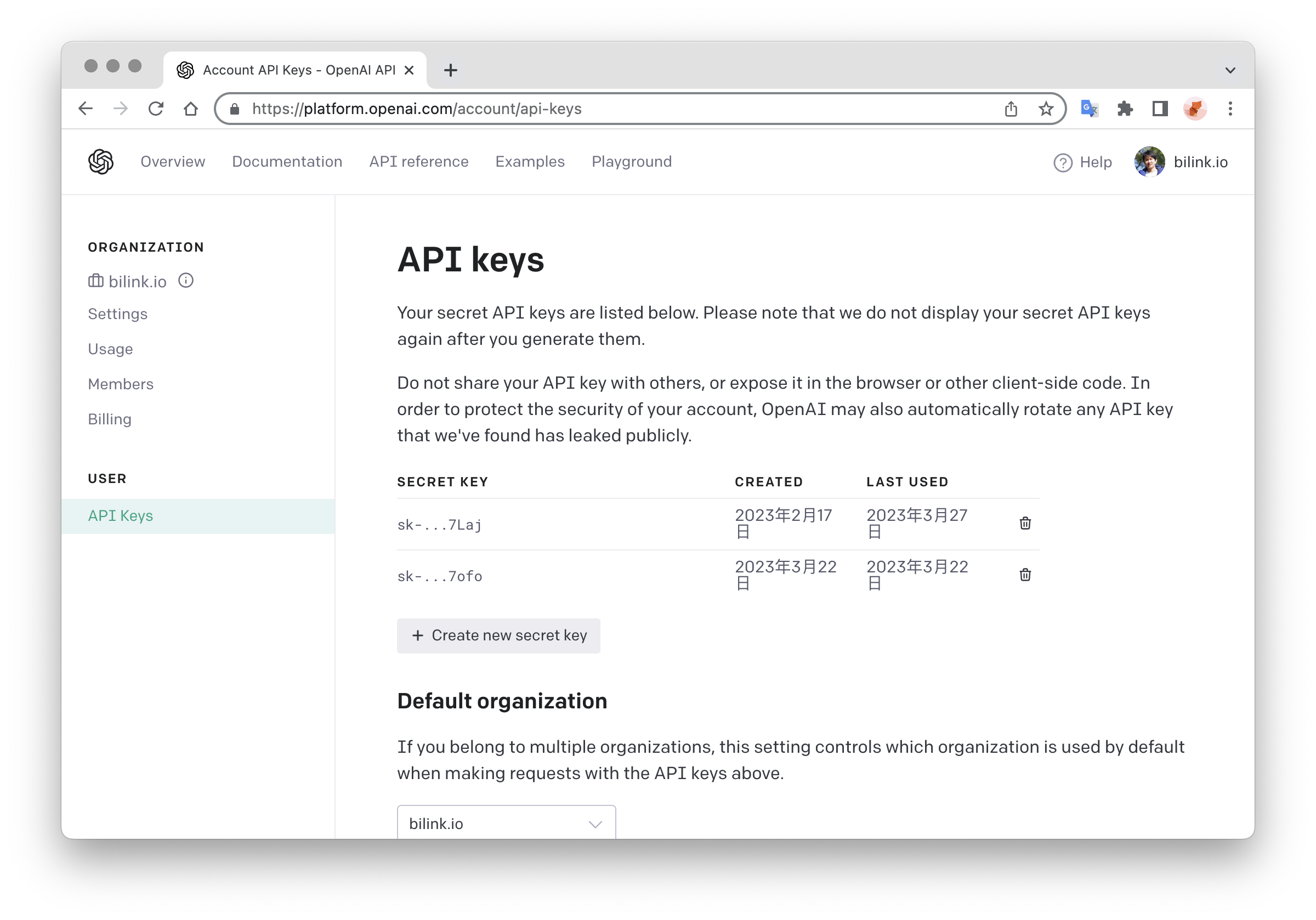 接著進入 Manage account 中的 API Keys 產生金鑰,複製到剪貼簿即可: