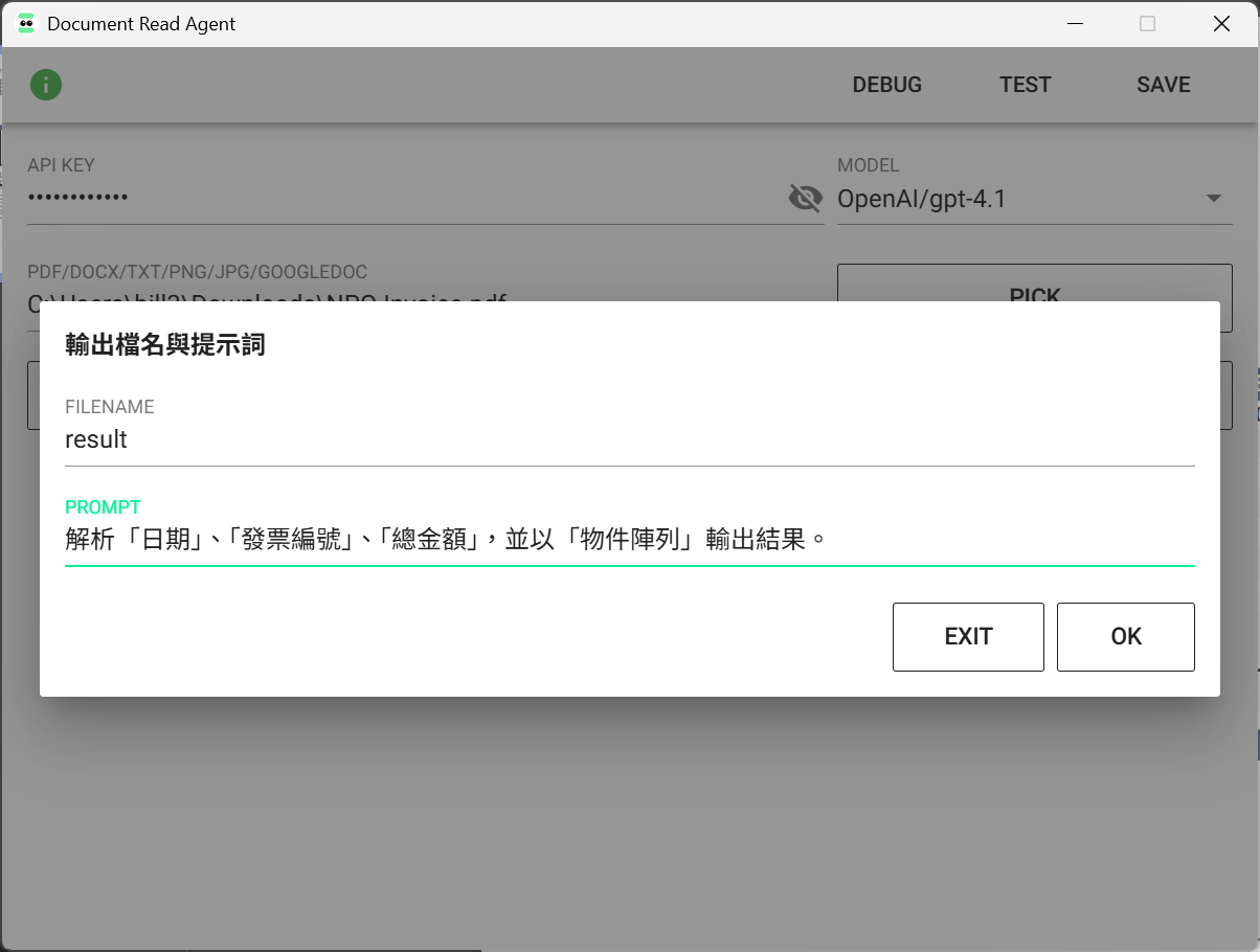 使用LLM擷取文件(PDF/DOCX/TXT/PNG/JPG/Google-Docs)中的資訊,並輸出文本結果(TXT)。