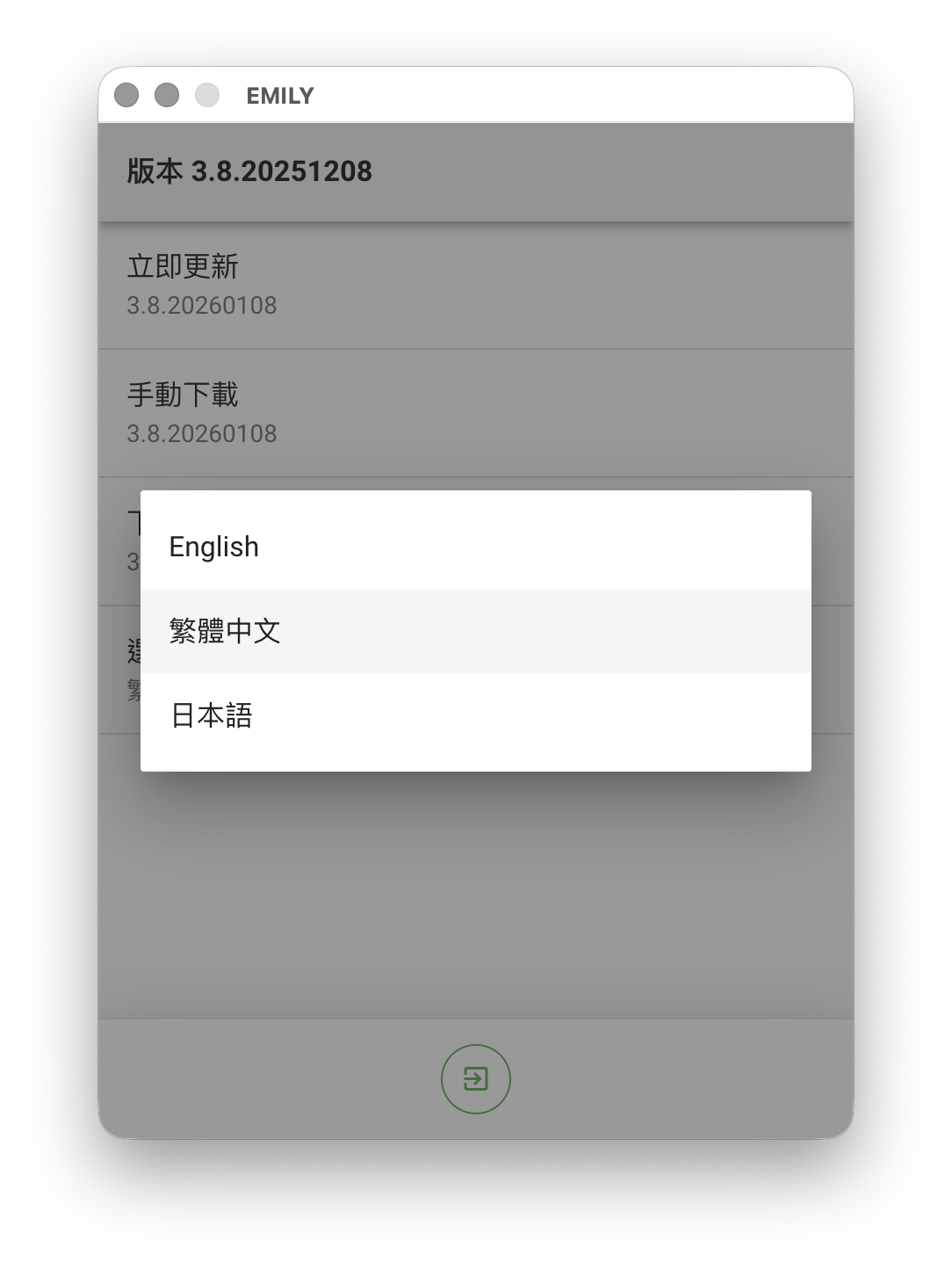 點擊版本項目後會進入版本詳情頁。如果有可更新版本,頁面會出現「立即更新」與「手動下載」兩個選項,其中如果立即更新無法成功可以改用手動下載,原因是防毒軟體或端點保護軟體可能禁止下載可安裝執行的檔案。手動下載時要確保防火牆允許 cdn.emily-rpa.com 這個網域的連線。