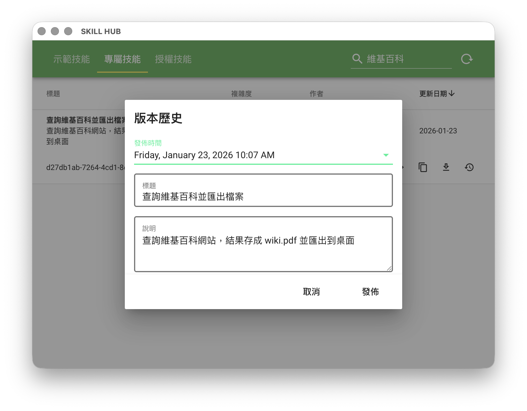 這時上傳技能到「雲端技能庫」保存的會是檔案路徑而不是資料本身。