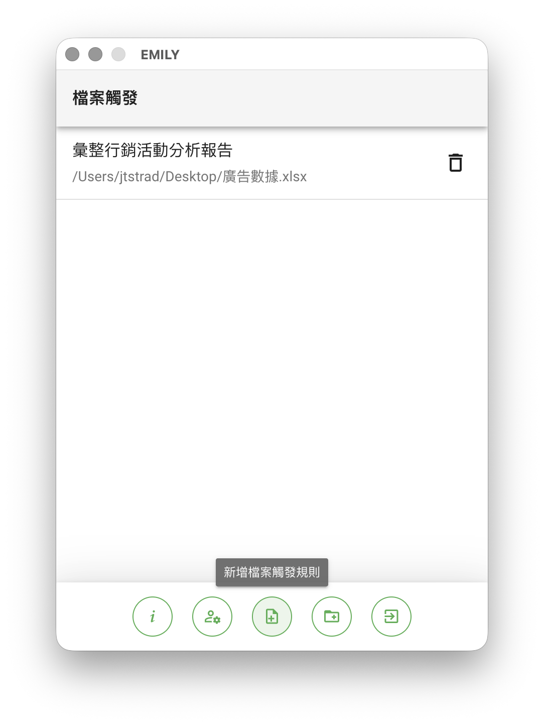 檔案觸發是讓 EMILY.RPA 監看指定的檔案或資料夾,當監看的檔案或資料夾變動時執行指定的技能,變動包含名稱的改變與內容的改變,被刪除也算。