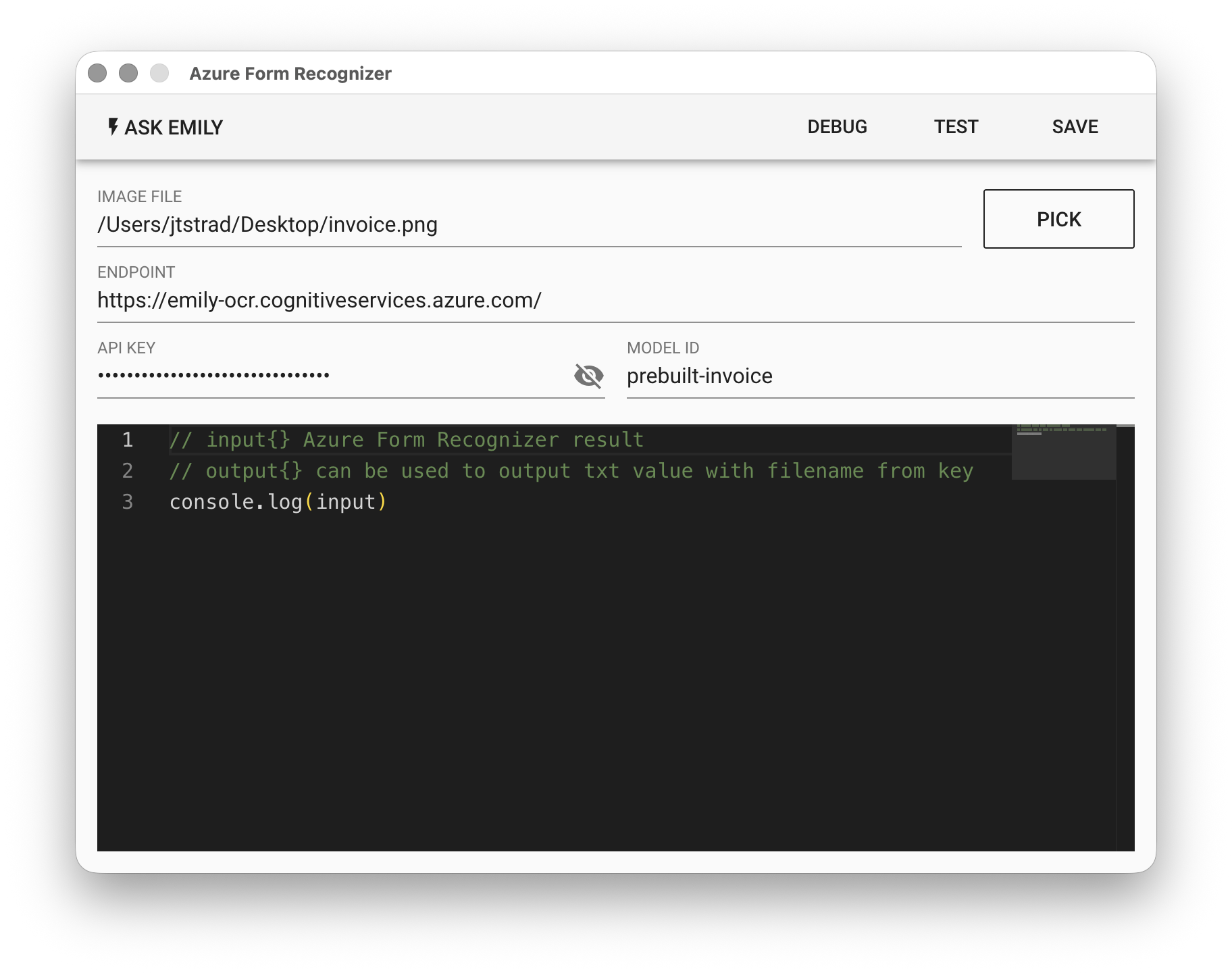 API KEY - 在 Azure 中開出的表格辨識器金鑰。