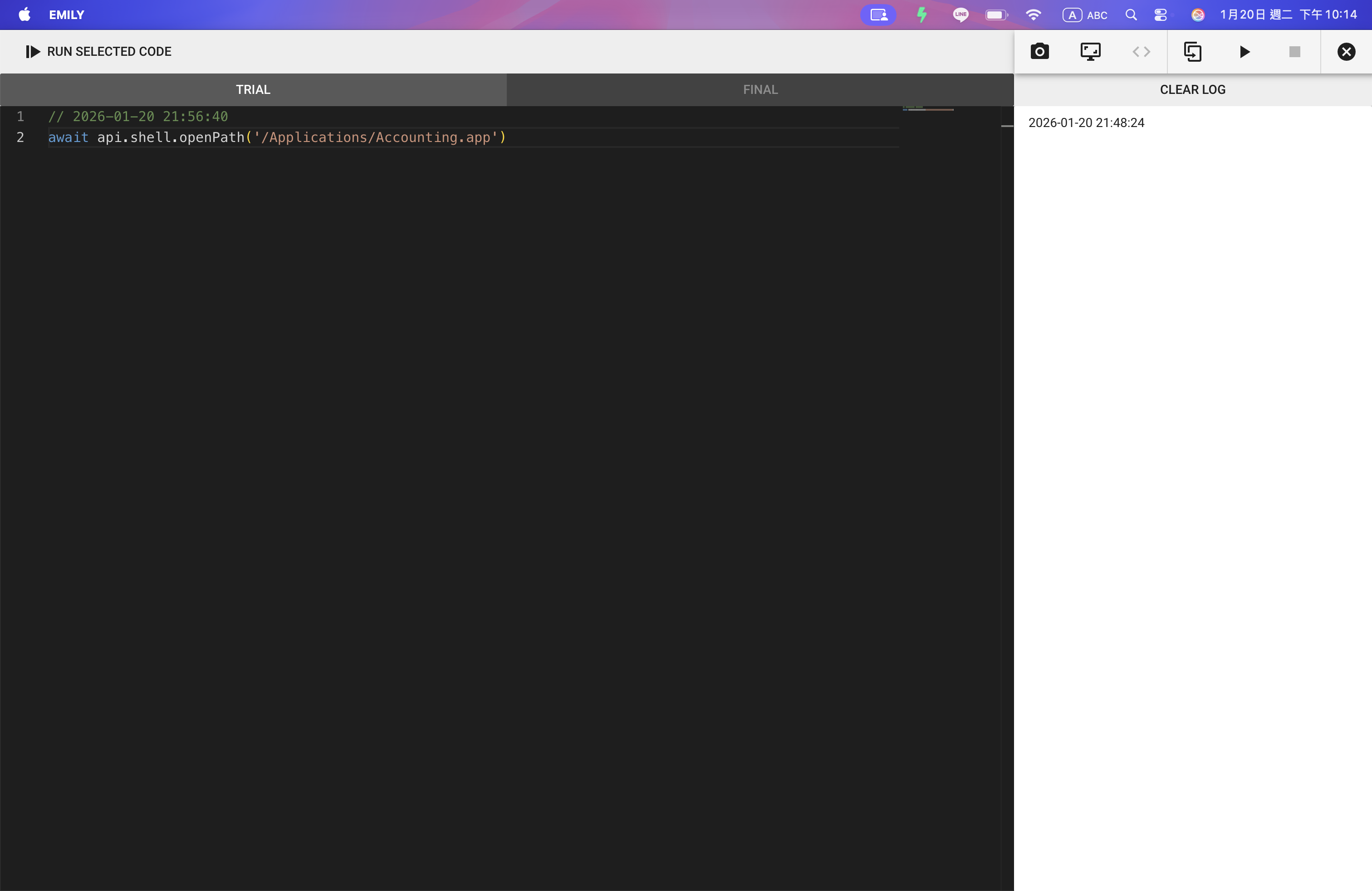 例如,點選 OPEN FILE 新增一個指令打開會計軟體 Accounting.app。