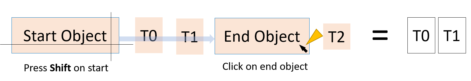 游標置於起始鍵值物件上按下Shift,游標移至結束鍵值物件上點擊,即可選取兩者間的物件